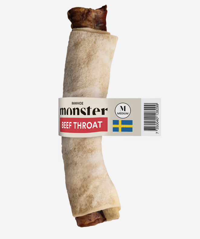 Tuggben med nöthud. Varsamt handrullade i Sverige och fyllda med matstrupe. Helt utan blekmedel och tillsatser (eller andra konstigheter). Låt din hund njuta för full hals!